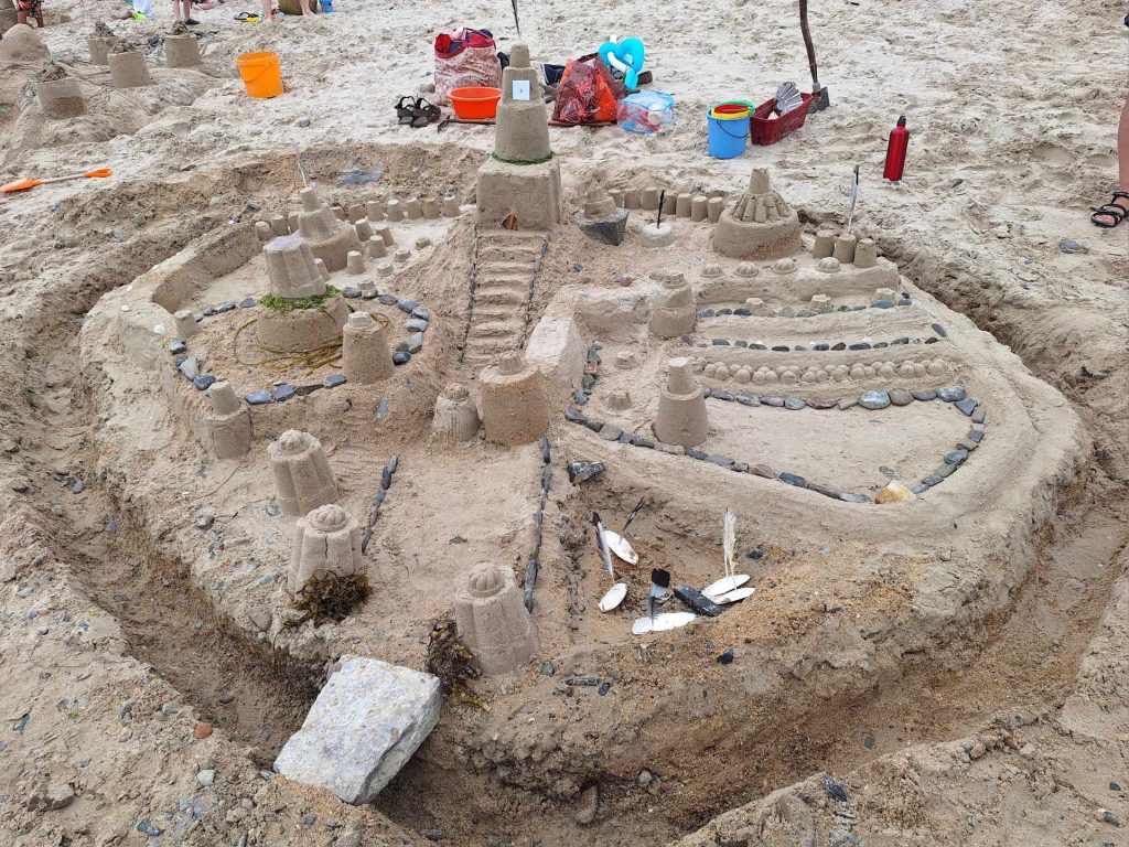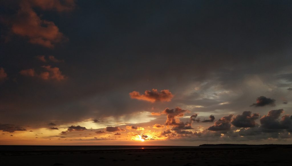 Cette année, on profite du soleil et de la plage : baignades, bain de soleil, jeux de plages et châteaux de sables… sans oublier les fameux couchers de soleil de Portbail sur Mer ! Oui : LOVE